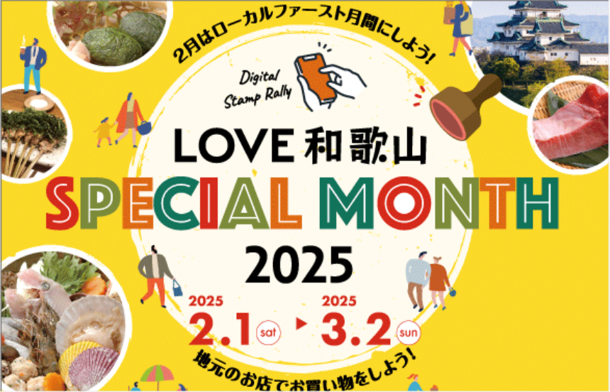 2月1日(土)~3月2日(日)、和歌山市内の店や施設、スポットなど、100店舗以上を対象としたスタンプラリー「LOVE和歌山 SPECIAL MONTH 2025」が開催されます。