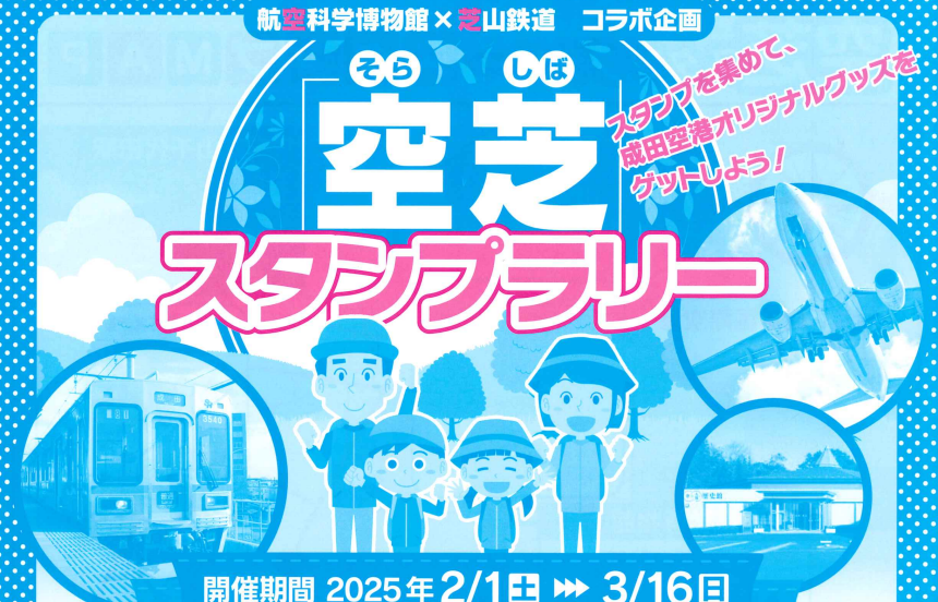 芝山鉄道では、(公財)航空科学博物館とのコラボ企画「空芝(そらしば)スタンプラリー」を開催します。