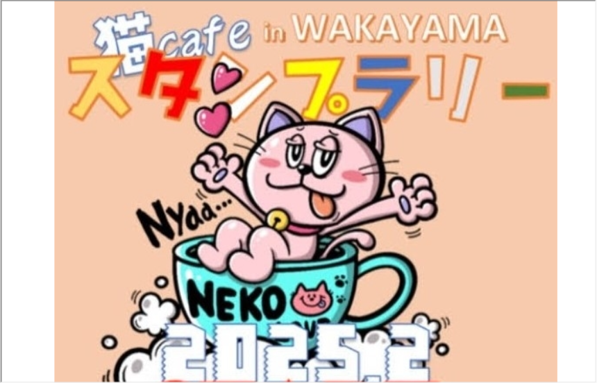 【免責事項】当Webサイトに掲載しているスタンプラリー情報は主催者の提供する情報をもとにしており、当協会において内容を保証するものではございません。掲載内容の不備による損害等については責任を負いかねます。また当Webサイトに掲載の情報やURLは予告なしに変更または中止されることがあります。「猫カフェスタンプラリーinWAKAYAMA」に関するお問い合わせは、当協会ではなく開催団体までお願いいたします。