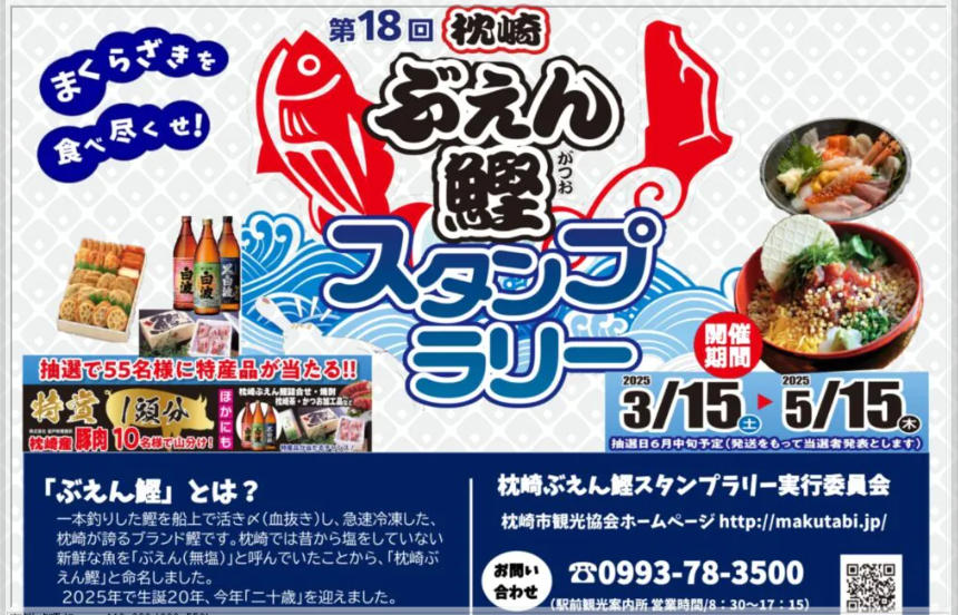 初鰹の季節に合わせて開催される枕崎ぶえん鰹スタンプラリー。