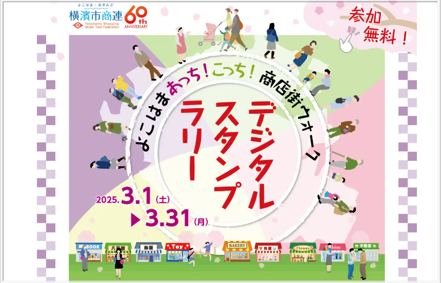【免責事項】当Webサイトに掲載しているスタンプラリー情報は主催者の提供する情報をもとにしており、当協会において内容を保証するものではございません。掲載内容の不備による損害等については責任を負いかねます。また当Webサイトに掲載の情報やURLは予告なしに変更または中止されることがあります。「よこはまあっち!こっち!商店街ウォークデジタルスタンプラリー」に関するお問い合わせは、当協会ではなく開催団体までお願いいたします。
