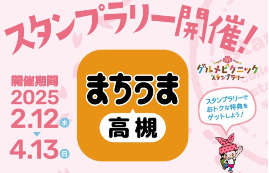 【免責事項】当Webサイトに掲載しているスタンプラリー情報は主催者の提供する情報をもとにしており、当協会において内容を保証するものではございません。掲載内容の不備による損害等については責任を負いかねます。また当Webサイトに掲載の情報やURLは予告なしに変更または中止されることがあります。「まちうま高槻グルメピクニックスタンプラリー2025」に関するお問い合わせは、当協会ではなく開催団体までお願いいたします。