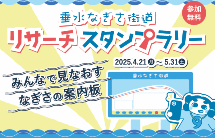 そこで、このエリア一体の回遊性向上を図るため、「垂水なぎさ街道」の案内板のリニューアルに向けた意見収集を目的としたデジタルスタンプラリーを開催します。