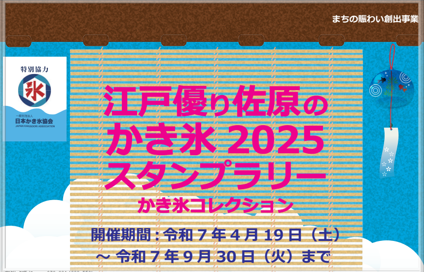 【免責事項】当Webサイトに掲載しているスタンプラリー情報は主催者の提供する情報をもとにしており、当協会において内容を保証するものではございません。掲載内容の不備による損害等については責任を負いかねます。また当Webサイトに掲載の情報やURLは予告なしに変更または中止されることがあります。「江戸優り佐原のかき氷2025スタンプラリー」に関するお問い合わせは、当協会ではなく開催団体までお願いいたします。