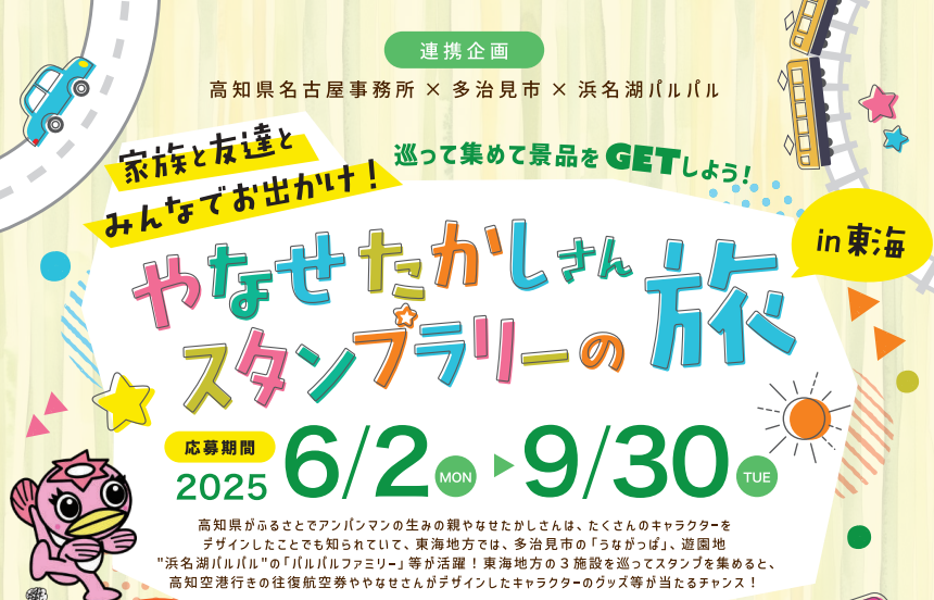 令和7年6月2日(月)~9月30日(火) の期間「やなせたかしさんスタンプラリーの旅 in 東海」を開催します。