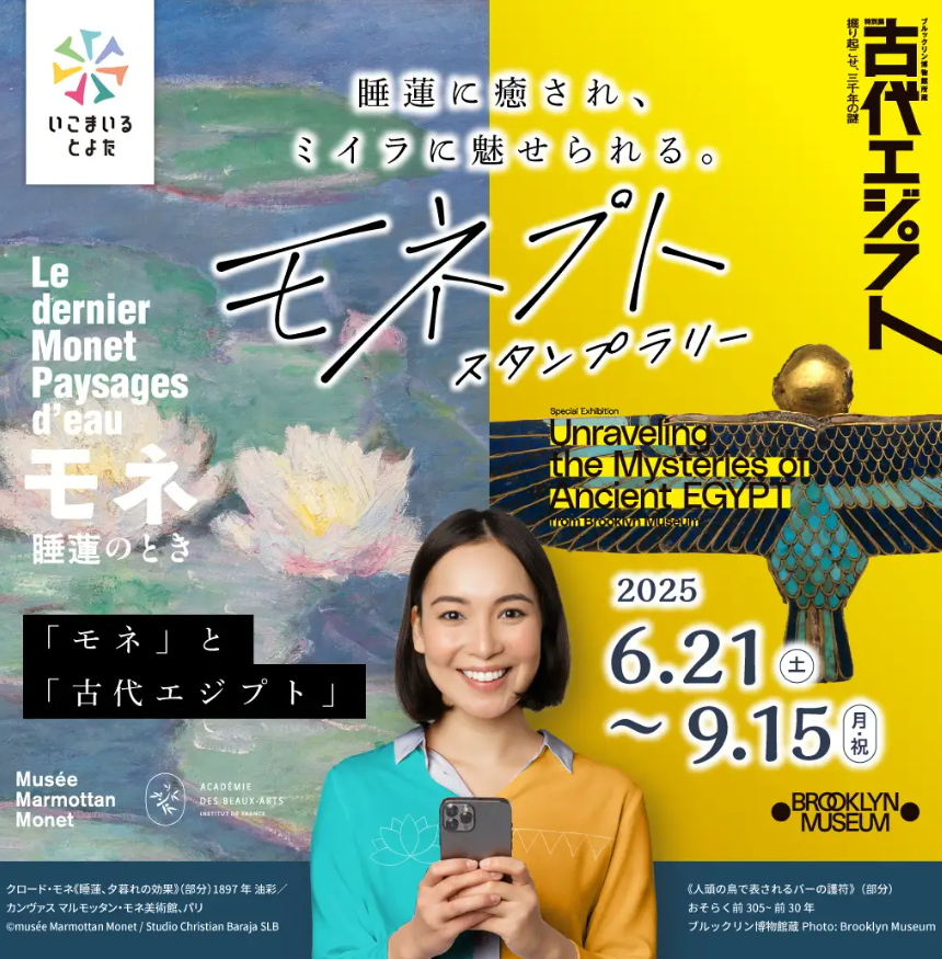 豊田市は、2025年6月21日(土)から開催する豊田市美術館の「モネ 睡蓮のとき」(以下「モネ展」)及び6月28日(土)から開催する豊田市博物館の「ブルックリン博物館所蔵 特別展 古代エジプト」(以下「エジプト展」)の開催にあわせ、市内滞在及び周遊を促進し、地域の活性化を図るための様々な取組を、一般社団法人ツーリズムとよた及び一般社団法人TCCM並びに豊田市中心市街地まちなか宣伝会議と連携して実施します。