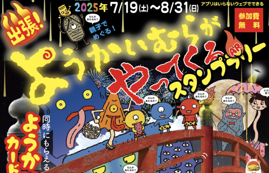西宮市内を中心に、兵庫県内を親子で巡る夏の恒例イベント『ようかいむらスタンプラリー』が今年も開催されるそうです。