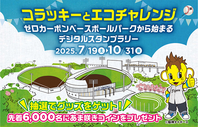 【免責事項】当Webサイトに掲載しているスタンプラリー情報は主催者の提供する情報をもとにしており、当協会において内容を保証するものではございません。掲載内容の不備による損害等については責任を負いかねます。また当Webサイトに掲載の情報やURLは予告なしに変更または中止されることがあります。「コラッキーとエコチャレンジ ゼロカーボンベースボールから始まるデジタルスタンプラリー」に関するお問い合わせは、当協会ではなく開催団体までお願いいたします。