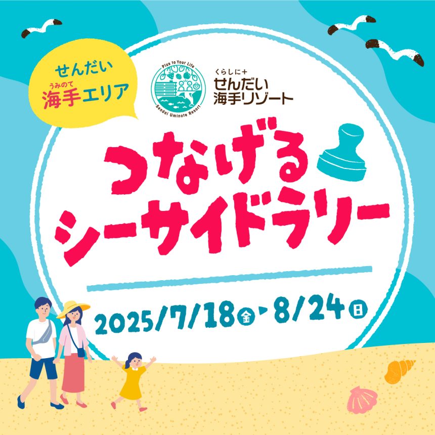 【免責事項】当Webサイトに掲載しているスタンプラリー情報は主催者の提供する情報をもとにしており、当協会において内容を保証するものではございません。掲載内容の不備による損害等については責任を負いかねます。また当Webサイトに掲載の情報やURLは予告なしに変更または中止されることがあります。「せんだい海手エリア つなげるシーサイドラリー 2025」に関するお問い合わせは、当協会ではなく開催団体までお願いいたします。