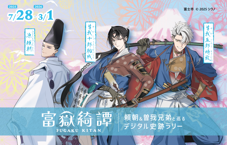 こうした史跡を巡ることで、頼朝や曽我兄弟が富士山麓で紡いだ想いを共に感じていただき、デジタルスタンプラリーを楽しんでいただきます。期間:7/28~3/1
