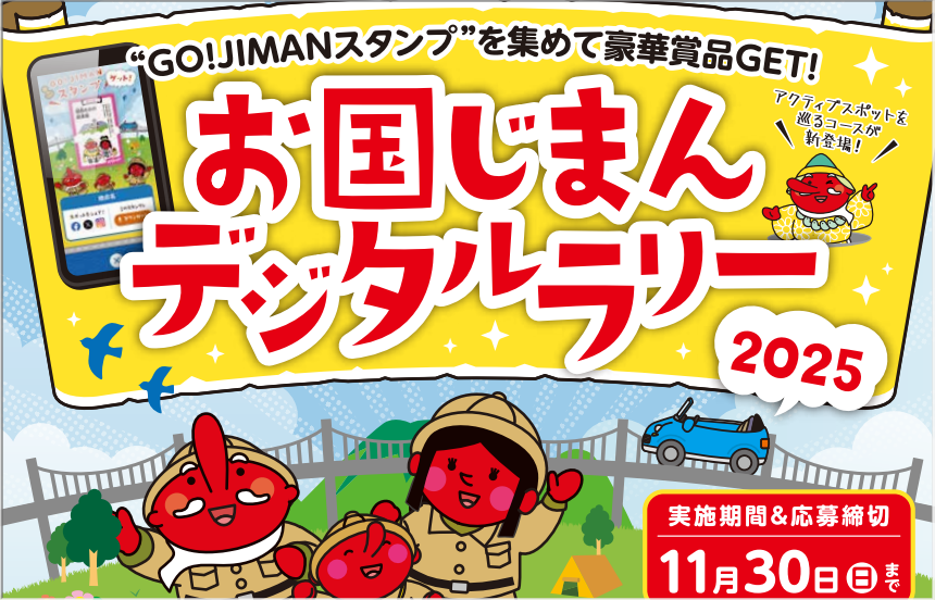 【免責事項】当Webサイトに掲載しているスタンプラリー情報は主催者の提供する情報をもとにしており、当協会において内容を保証するものではございません。掲載内容の不備による損害等については責任を負いかねます。また当Webサイトに掲載の情報やURLは予告なしに変更または中止されることがあります。「お国じまんデジタルラリー2025」に関するお問い合わせは、当協会ではなく開催団体までお願いいたします。