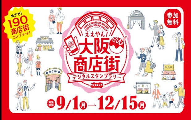 【免責事項】当Webサイトに掲載しているスタンプラリー情報は主催者の提供する情報をもとにしており、当協会において内容を保証するものではございません。掲載内容の不備による損害等については責任を負いかねます。また当Webサイトに掲載の情報やURLは予告なしに変更または中止されることがあります。「ええやん!大阪商店街 デジタルスタンプラリー」に関するお問い合わせは、当協会ではなく開催団体までお願いいたします。