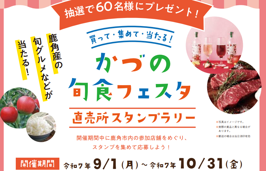 鹿角産の農畜産物や加工品のPRと販売促進を目的としたイベント「かづの旬食フェスタ」にあわせ、イベントと継続した販売につなげることを目的に市内の直売所をめぐるスタンプラリーを開催します。