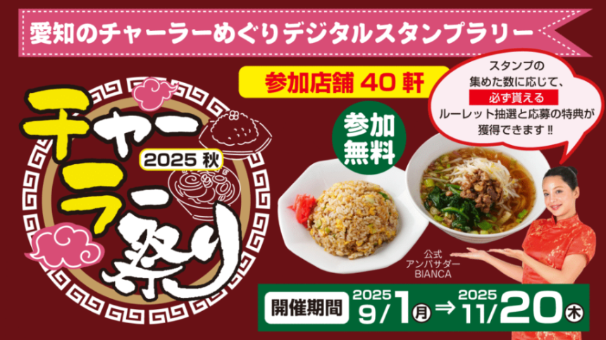 【免責事項】当Webサイトに掲載しているスタンプラリー情報は主催者の提供する情報をもとにしており、当協会において内容を保証するものではございません。掲載内容の不備による損害等については責任を負いかねます。また当Webサイトに掲載の情報やURLは予告なしに変更または中止されることがあります。「チャーラー祭り 2025 秋」に関するお問い合わせは、当協会ではなく開催団体までお願いいたします。