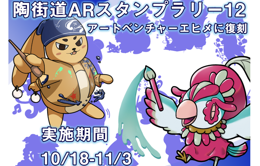 【免責事項】当Webサイトに掲載しているスタンプラリー情報は主催者の提供する情報をもとにしており、当協会において内容を保証するものではございません。掲載内容の不備による損害等については責任を負いかねます。また当Webサイトに掲載の情報やURLは予告なしに変更または中止されることがあります。「陶街道ARスタンプラリー12」に関するお問い合わせは、当協会ではなく開催団体までお願いいたします。