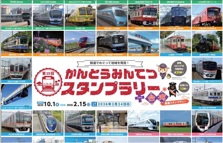 関東鉄道協会と同会加盟の39社などは、「第15回かんとうみんてつスタンプラリー+台湾スタンプラリー」を開催。