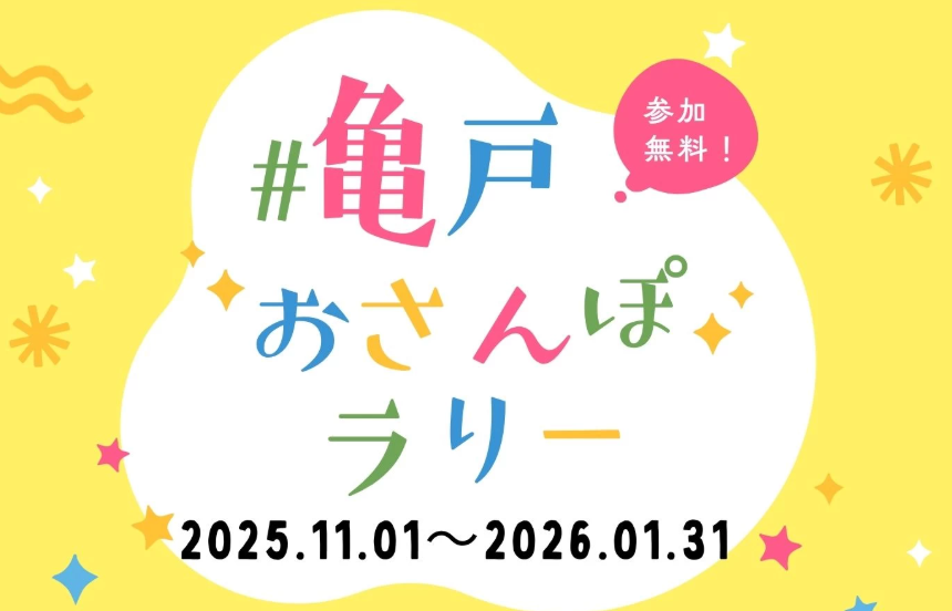 2025年11月1日から2026年1月31日までの3ヶ月間、亀戸の街をめぐる「#亀戸おさんぽラリー」が開催されます!