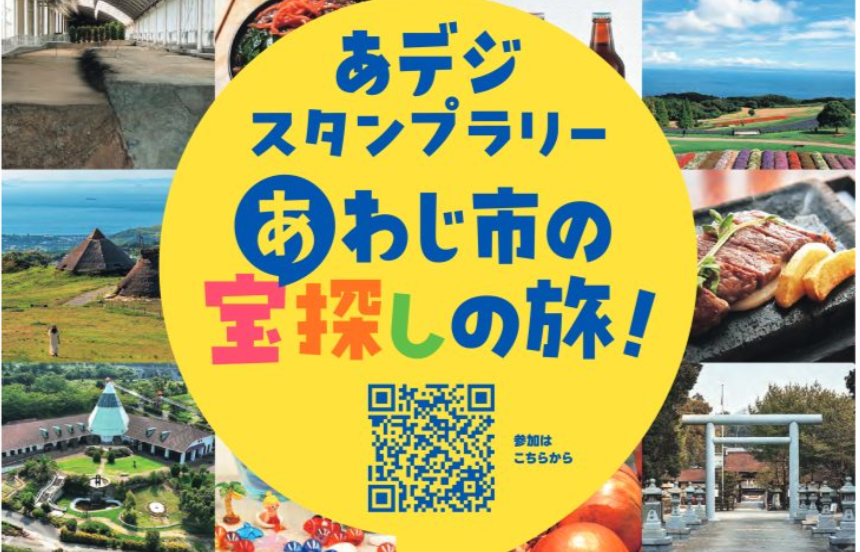 【免責事項】当Webサイトに掲載しているスタンプラリー情報は主催者の提供する情報をもとにしており、当協会において内容を保証するものではございません。掲載内容の不備による損害等については責任を負いかねます。また当Webサイトに掲載の情報やURLは予告なしに変更または中止されることがあります。「淡路市デジタルマップ「あデジ」スタンプラリー」に関するお問い合わせは、当協会ではなく開催団体までお願いいたします。