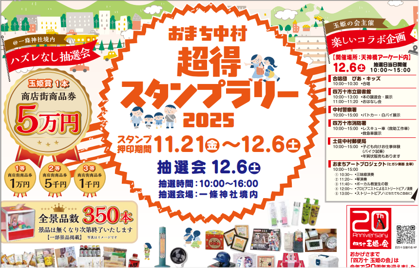 【免責事項】当Webサイトに掲載しているスタンプラリー情報は主催者の提供する情報をもとにしており、当協会において内容を保証するものではございません。掲載内容の不備による損害等については責任を負いかねます。また当Webサイトに掲載の情報やURLは予告なしに変更または中止されることがあります。「おまち中村超得スタンプラリー2025」に関するお問い合わせは、当協会ではなく開催団体までお願いいたします。