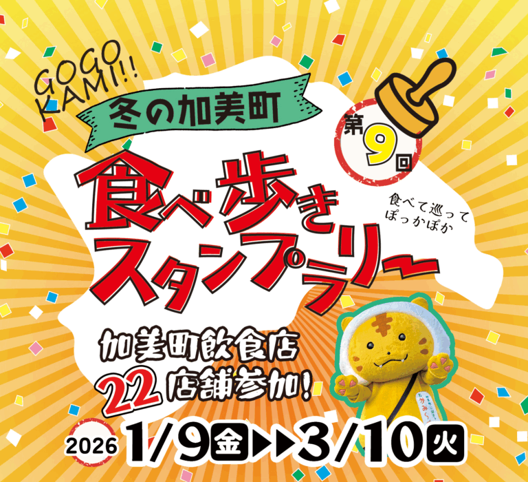 【免責事項】当Webサイトに掲載しているスタンプラリー情報は主催者の提供する情報をもとにしており、当協会において内容を保証するものではございません。掲載内容の不備による損害等については責任を負いかねます。また当Webサイトに掲載の情報やURLは予告なしに変更または中止されることがあります。「第9回 冬の加美町食べ歩きスタンプラリー」に関するお問い合わせは、当協会ではなく開催団体までお願いいたします。