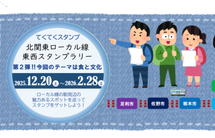 【免責事項】当Webサイトに掲載しているスタンプラリー情報は主催者の提供する情報をもとにしており、当協会において内容を保証するものではございません。掲載内容の不備による損害等については責任を負いかねます。また当Webサイトに掲載の情報やURLは予告なしに変更または中止されることがあります。「北関東ローカル線東西スタンプラリー」に関するお問い合わせは、当協会ではなく開催団体までお願いいたします。