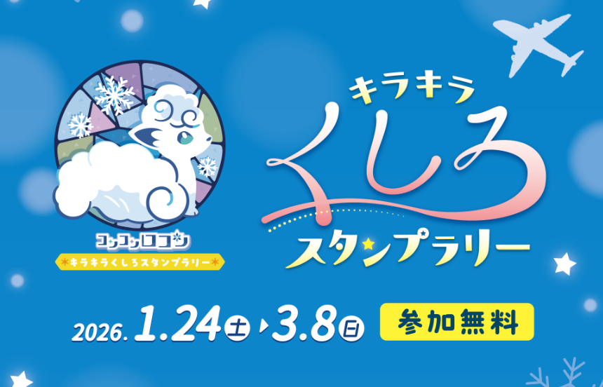 【免責事項】当Webサイトに掲載しているスタンプラリー情報は主催者の提供する情報をもとにしており、当協会において内容を保証するものではございません。掲載内容の不備による損害等については責任を負いかねます。また当Webサイトに掲載の情報やURLは予告なしに変更または中止されることがあります。「コンコンロコン キラキラくしろスタンプラリー ☆2026☆」に関するお問い合わせは、当協会ではなく開催団体までお願いいたします。