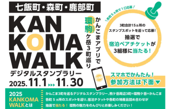 かんこま3町(森町・鹿部町・七飯町)を巡る、かんこまウォークデジタルスタンプラリーが開催されます!スマートフォンのアプ…