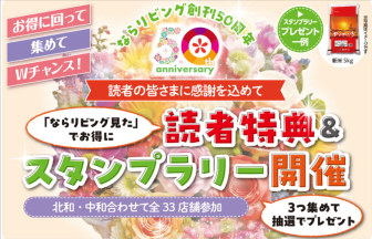 【開催概要】名称:ならリビング創刊50周年 読者特典&スタンプラリー期間:2025年11月7日(金)〜12月12日(金)エリア:奈…
