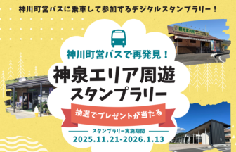 神川町営バスに乗車して、神泉エリアをめぐるデジタルスタンプラリーを開催します!抽選で20名様に豪華賞品のプレゼントがご…